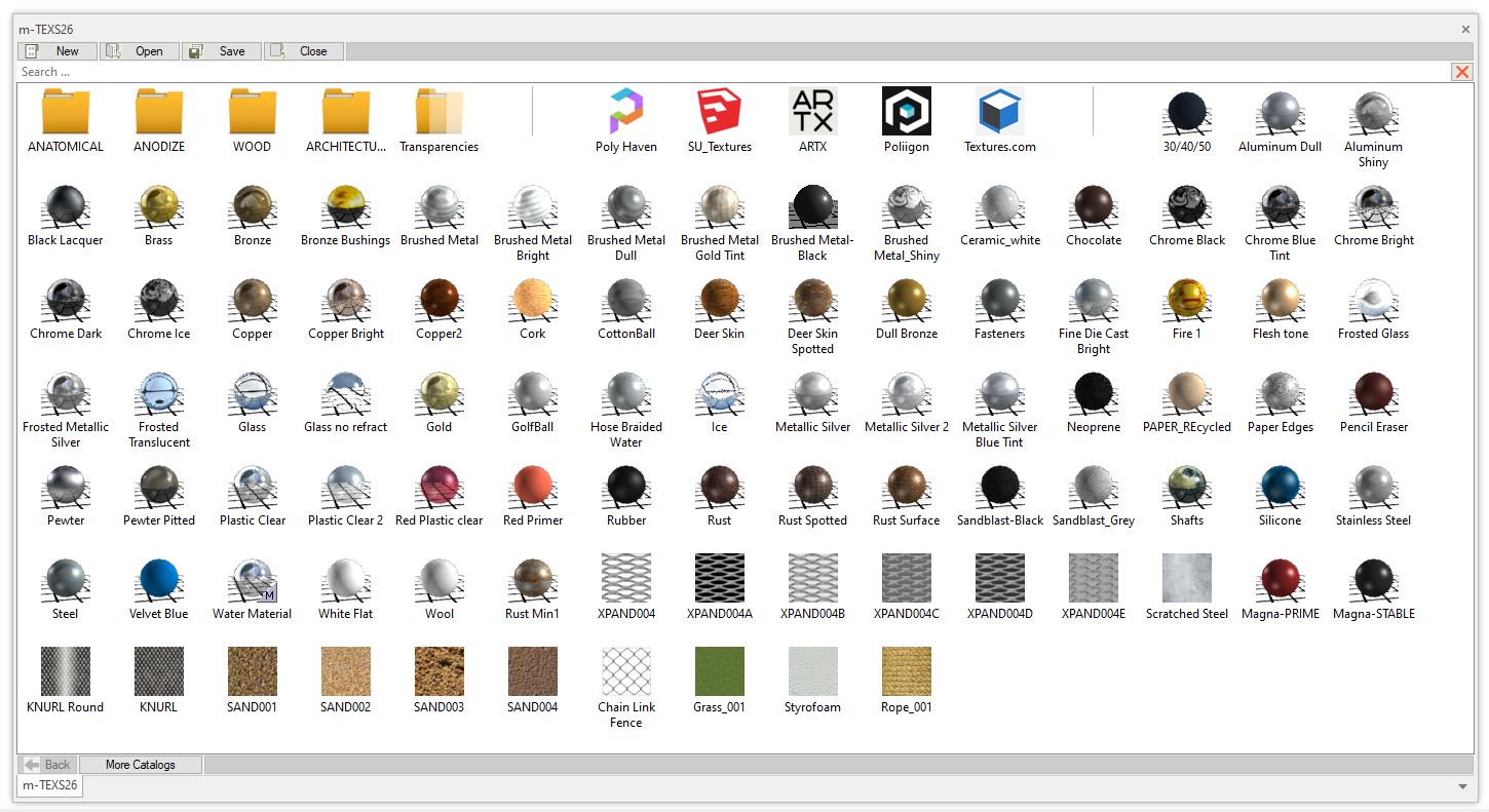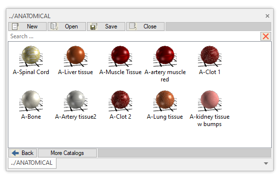Mag-TEXS is an IronCAD catalog exclusively developed by Magnacad, LLC with a varied collection of colors and textures for various applications. The catalog includes all the typical textures such as metal and glass and even has an anatomical sub-group.
