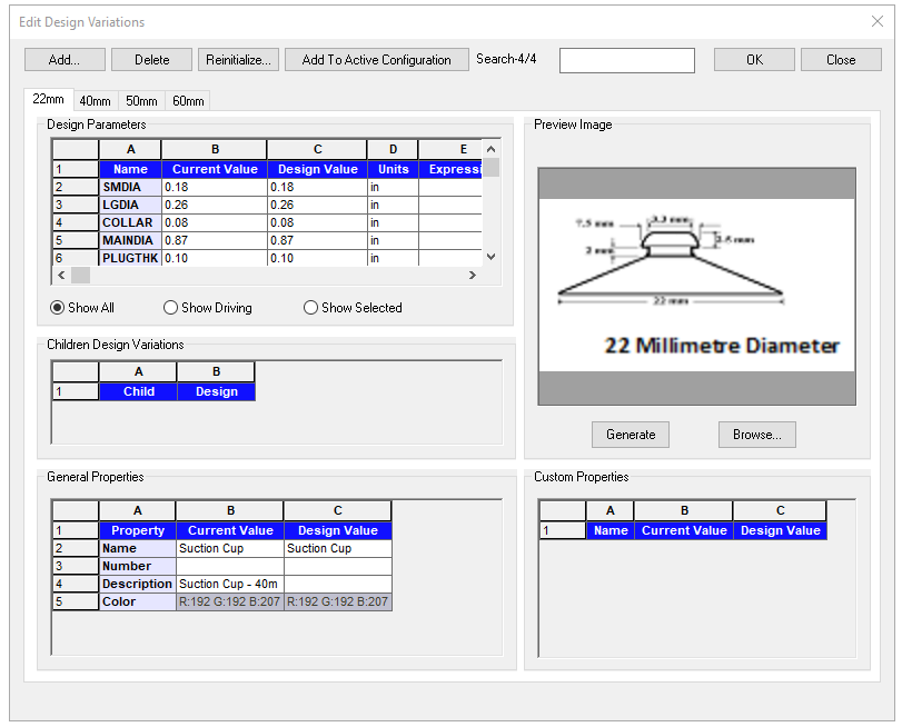 A design variant model of a common suction cup in various sizes.
