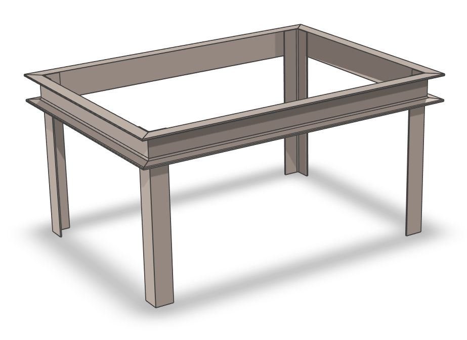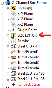 A Structured part steel frame construction. C Channel top frame with angle legs. Reize the frame using the "SIZEBOX EDITOR" in the feature tree. Of course, you can edit the components as desired using standard IronCAD methods.