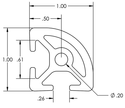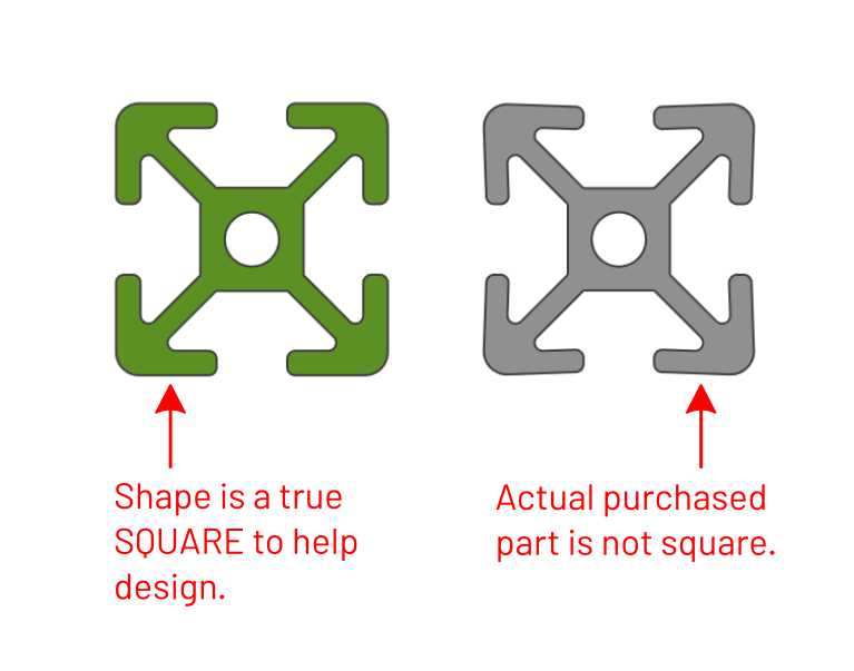 Extruded Aluminum Profiles from Eagle Aluminum product line. These are some of the common profiles used. There are two versions, the post fix of "SQ" indicates the profile has been modified to be truly square for designing purposes. The other is the actual profile of purchased parts. Its receommended to use the "SQ" versions when designing to allow proper snapping and positioning. The actual shapes can be used for more realism if desired after design is completed.