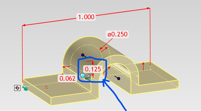 A direct dimension driven shape. Added more geometric constants for better success. Also added Center of Radius constraint dimension (ie. 0.125) for more control. Also updated to be dropped as an Intellishape if desired.