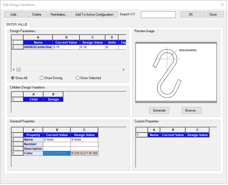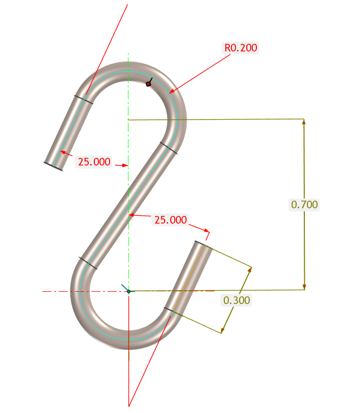 A variant model of a common S Hook. You can enter the desired radial centerline dimension of hook via thr Design Variation. You also have the ability to edit the dimensions in the profile if desired as well.