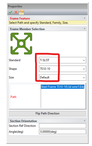 Structured Steel Frame which is set by default to use the eagle T-slot TS10-10. This is using the T-SLOT Custom Structured Frame files included in this release.