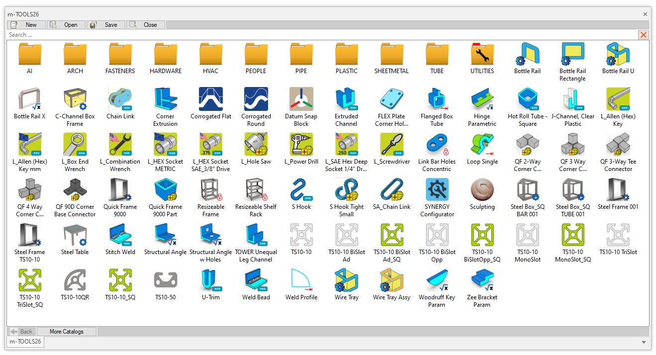 Mag-TOOLS is an IronCAD catalog exclusively developed by Magnacad, LLC with a varied collection of components. Such components include; Tubing and Pipe Variant models with associated components, Advanced fasteners such as U-Bolts, Assembly-Features, ANSI intellishapes, and more.